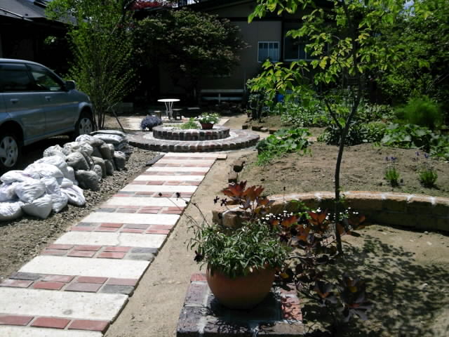 どこの国と思ってしまうほど緑のトンネルが、包み込む空間。 こちらは、ご近所で、GIFTのお客様のお庭です〜 まさに、富ヶ丘のジブリです。 しかも緑のトンネルを、ぬけると、もう一つ公園を、建設中なんです〜 使い込んだ風合いのレンガを組んであったり、完成が、楽しみです☆